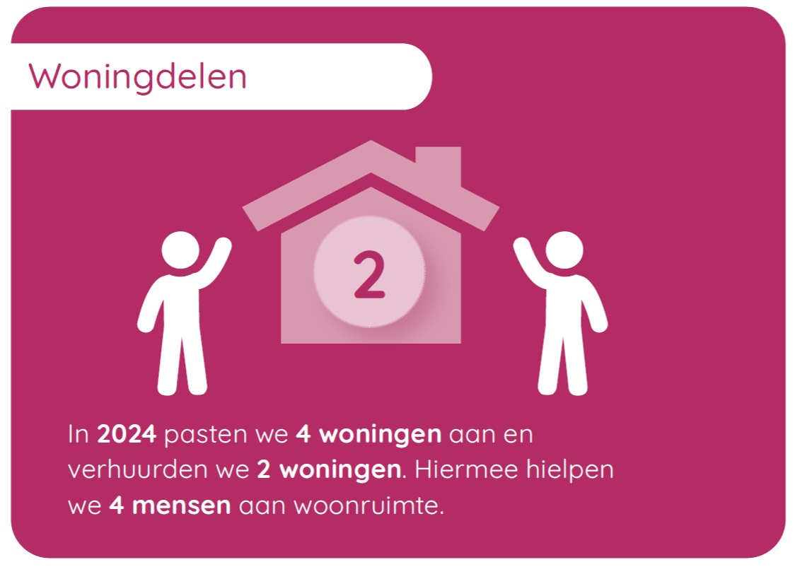 We maakten 4 bestaande eengezinswoningen geschikt voor Woningdelen. In zo'n woning maken we 2 slaapkamers met eigen badkamers. De 2 bewoners delen de woonkamer, de keuken en de tuin. Zo kunnen meer mensen woonruimte vinden en verkleinen we de druk op de woningmarkt. De eerste bewoners zijn enthousiast over Woningdelen.