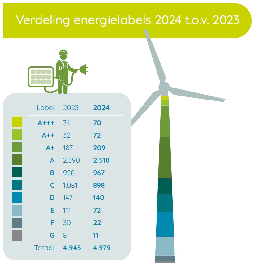 We staken opnieuw veel energie in de verduurzaming van onze woningen. Een fijn thuis betekent ook een comfortabele woning met een gezond binnenklimaat. In 2024 realiseerden we de onderstaande resultaten op het gebied van duurzaamheid.