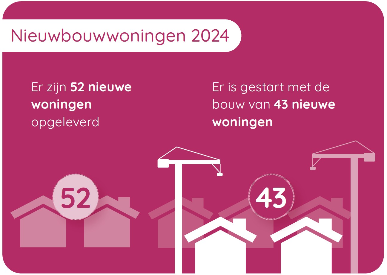 Helaas vinden veel mensen die dat willen of nodig hebben, geen woning. Een dak boven je hoofd vormt een basisbehoefte voor een fijn thuis. Daarom zorgen we ervoor dat er meer woningen bijgebouwd worden die wij kunnen verhuren. In 2024 zag dat er zo uit: