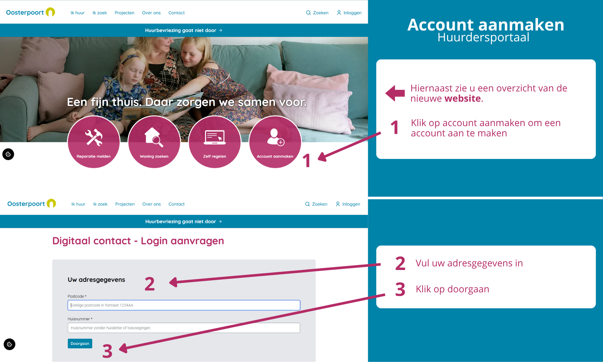Om gebruik te maken van het huurderspoortaal is het belangrijk dat u eerst een account aanmaakt. Zie hieronder hoe u dit doet.